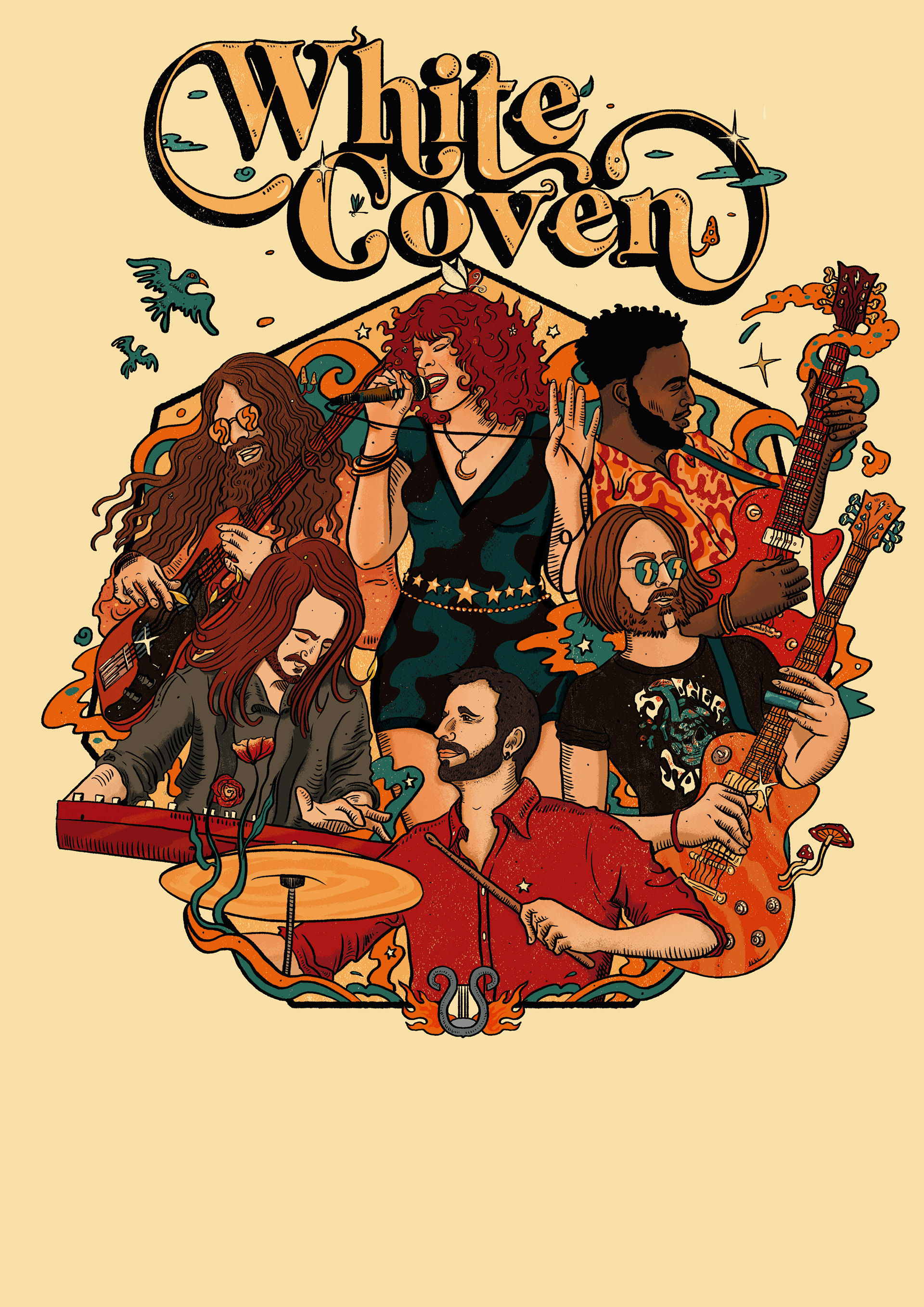 Trabajo para la banda White Coven. Diseño de cartel y camiseta